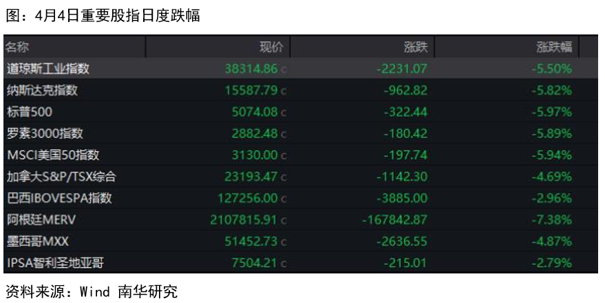 三、当日国内并未立刻采取反制。但是清明节后,周一开盘股市迎来大跌,一方面,国内采取反制措施,地缘政治风险有所升级,另一方面,全球权益市场的大幅下跌,对于国内风险偏好也造成明显冲击。