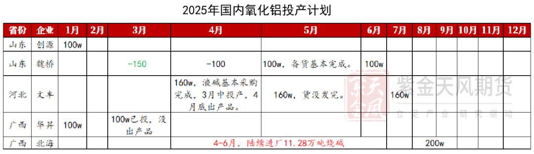 05之前,投产分散在两头,避开烧碱春季检修。剩余魏桥四线、文丰三线、北海备货;