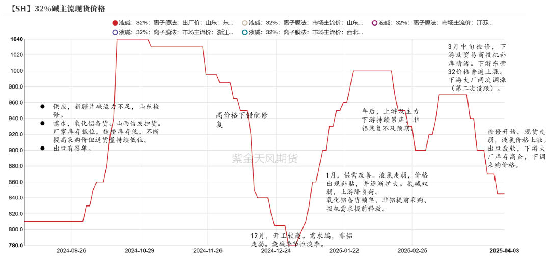 【一季度回顾】年前氧化铝备货、非铝提前抢订单导致需求前置,错配行情提前兑现,节后开始负反馈,高价格刺激供应、抑制需求,价格回落。一季度烧碱价格暴涨暴跌。