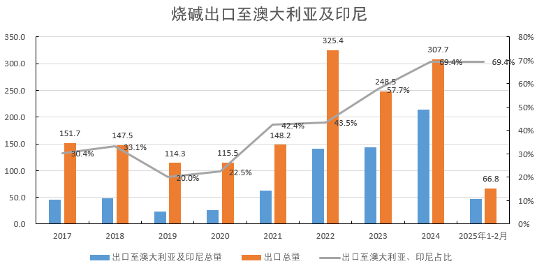 2024年全年出口307.7万吨,同比增23.8%。出口澳洲、印尼占69.4%。