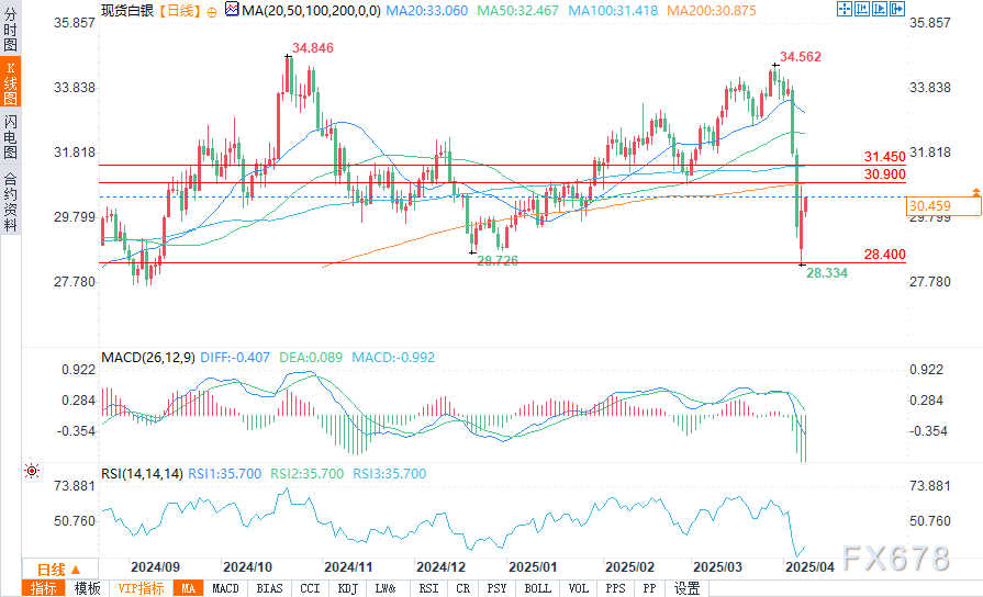 与此同时,全球贸易环境也在推动贵金属价格上涨。美国出台的新关税以及相关的反制措施引发了股票和债券市场的担忧。这种不确定性正促使资金流入避险资产,限制了白银的下行空间。