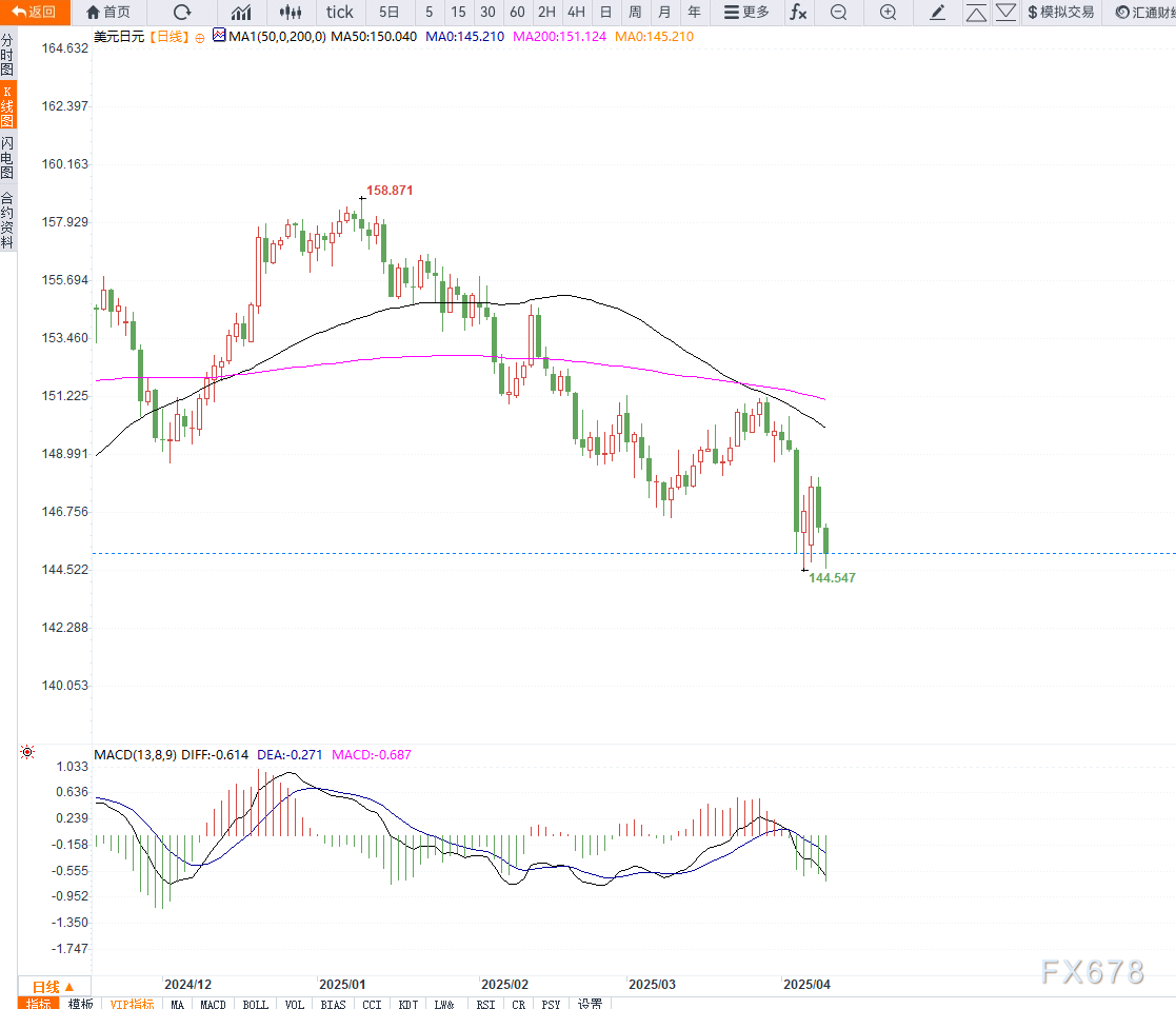 美日利差进一步收窄+避险情绪升温,日元兑美元逼近年内高点,144.55成关键支撑