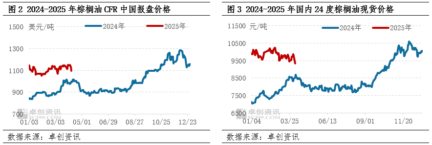 综上所述,关税政策博弈升级,宏观情绪偏空,节后棕榈油现货价格跌至年内最低。后市在原油供强需弱以及棕榈油基本面偏空预期下,预计棕榈油现货价格震荡下跌。