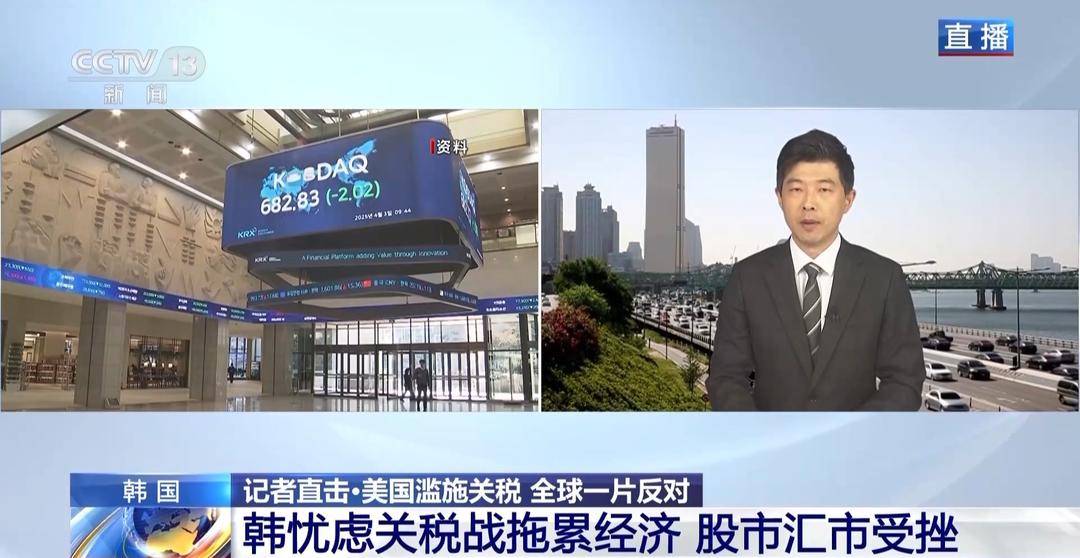 总台记者唐鑫:连日来,受到特朗普加征关税措施的影响,全球投资者信心不足,受此影响韩国股市、汇市等金融市场也动荡不断,韩国综合股价指数一度还出现跌幅超5%触发熔断的事件。外汇市场,韩币对美元汇率也持续下跌。最近一段时间1美元已经在逼近1500韩币的位置徘徊,这个数字是2009年金融危机后16年来韩币最低潮的水平。外界分析,可能几天内韩币就将时隔16年再次触及1500的心理关口。