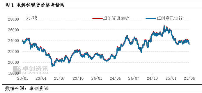 根据监测数据显示,一季度现货0#锌均价为24054元/吨,环比跌5.84%,同比涨14.48%。一季度现货锌震荡区间在23300-25900元/吨,日均价低点为23370元/吨,高点为25840元/吨,振幅达到10.57%。整体来看,一季度行情整体较去年四季度下移,但在历史同期仍处于高位。