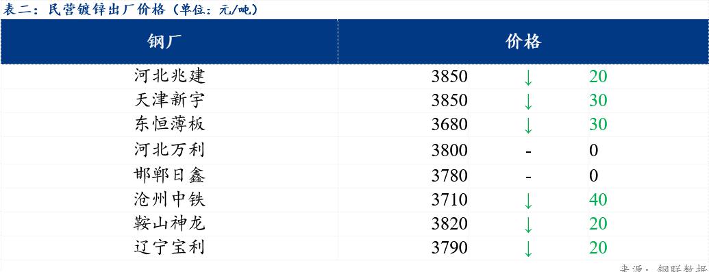 今日北方民营钢厂镀锌出厂指导价在3680元/吨-3850元/吨。