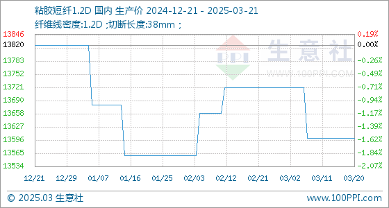 3月21日生意社粘胶短纤1.2D基准价为13600.00元/吨