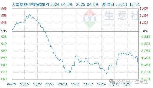 4月9日大宗商品价格指数BPI为882点,较昨日下降了834.33%33.64%
