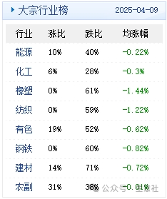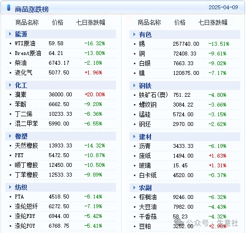 | 商品 | 行业 | 4月9日 | 单位 | 日涨跌 |