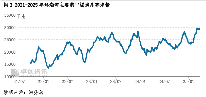 环渤海港口煤炭库存量维持在高位,去库迟缓,中转环节供应宽松