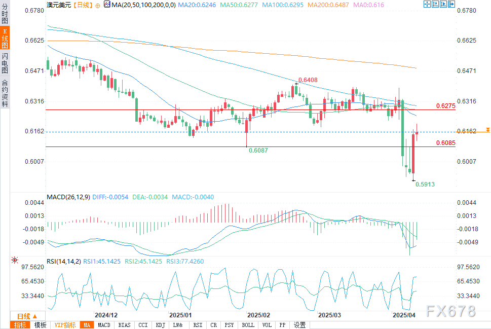 在特朗普暂停对70多个国家的“对等关税”后,市场参与者出现风险偏好情绪,澳元因此反弹。这一宣布导致美元大幅下跌,股市大幅上涨。