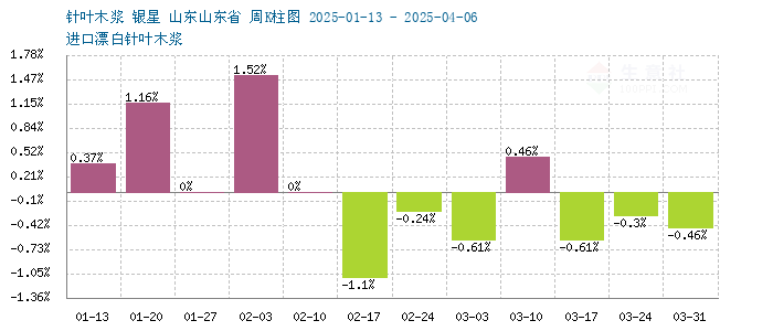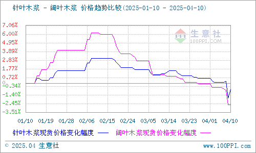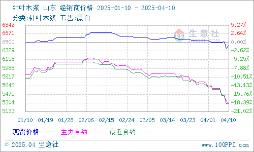 据生意社商品行情分析系统监测:近期针叶木浆和阔叶木浆价格仍保持下行走势。4月10日针叶木浆山东地区市场均价为6450元/吨,与4月1日均价相比下降了1.38%。4月10日阔叶木浆山东地区市场均价为4580元/吨,与4月1日均价相比下降了2.26%。