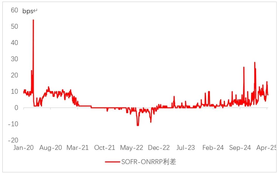 在关注货币市场价格指标时,我们首先应关注SOFR与ONRRP之间的利差。这一利差是衡量美元短期流动性紧张程度的核心指标,它反映了金融机构在获取资金时相对于美联储所需额外付出的成本。通常情况下,利差的扩大暗示着市场融资压力的上升。除了季末等特殊时期,SOFR与ONRRP利差的均值约为2.7个基点。
