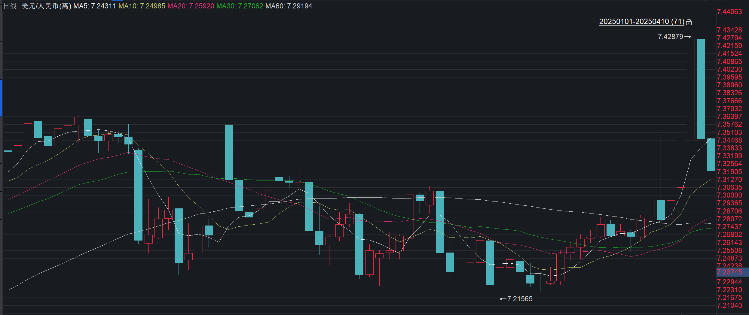 这也意味着过去两天离岸人民币汇率快速收复7.4整数关口。