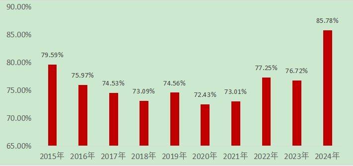 同时,伴随着2024年A股上市公司年报的集中披露,从已推出的年度现金分红方案或预案来看,沪深300指数成份股中共有193家上市企业在2024年年报中披露了年度现金分红方案或预案,累计现金分红高达1.52万亿元,占同口径下全部A股现金分红总额的85.94%,该占比为2015年以来的最高。