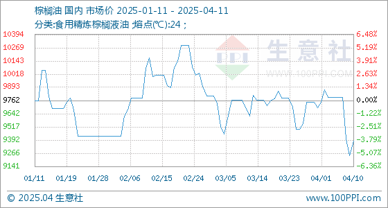 4月11日生意社棕榈油基准价为9384.00元/吨