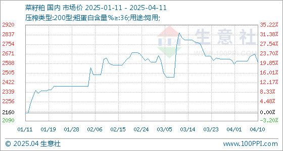 4月11日生意社菜籽粕基准价为2595.00元/吨