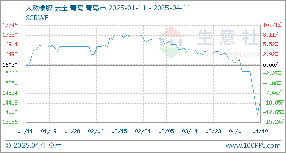 4月11日,生意社天然橡胶基准价为14555.00元/吨,与本月初(16138.00元/吨)相比,下降了-9.81%。
