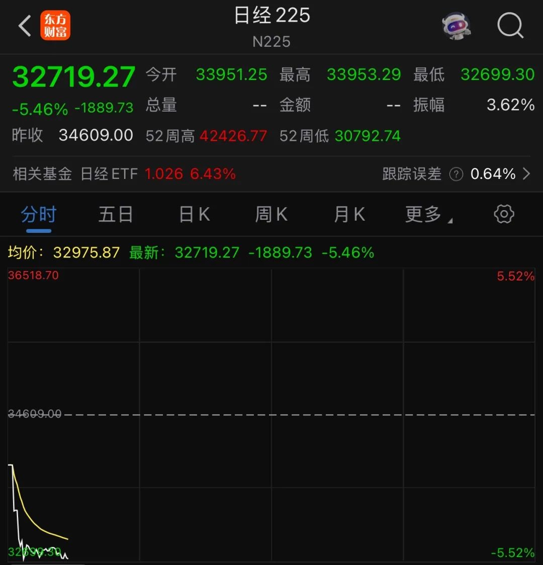 突发!美元崩了,日韩股市大跌!日经225指数跌超5%