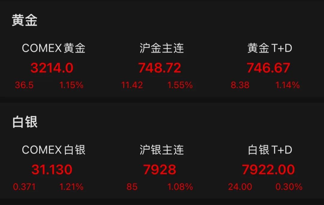 黄金再冲高,COMEX黄金突破3200美元/盎司。
