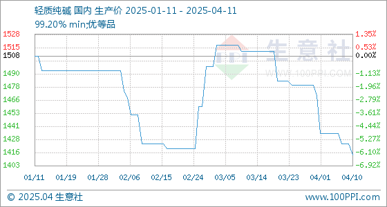 4月11日生意社轻质纯碱基准价为1414.00元/吨