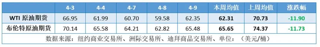 本周(4.3-4.9),原油整体呈现下行走势,周均价环比大幅下跌。