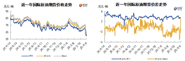 导言:本周(4.3-4.9),原油整体呈现下行的走势。WTI均价62.31美元/桶,较前一周下跌8.42美元/桶,或-11.90%。周内,导致油价承压的因素有:OPEC+增加增产幅度、美国关税政策以及投资者对经济前景的担忧。对油价起到支撑作用的因素有:技术面的反弹需求。