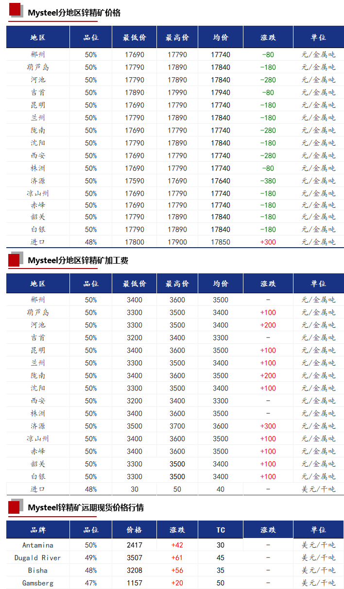 Mysteel日报:锌精矿加工费小幅增加市场成交氛围一般