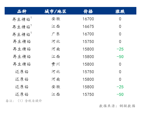 经市场参与者反馈,南方部分市场交投有所好转,蓄企周末补库意愿尚可,持续关注宏观方面近期所政策落地对后续市场影响发酵以及近期再生冶炼厂持续承压后续企业动态。