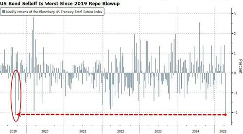 这使得美债市场本周遭遇了自2019年美国金融体系动荡迫使美联储采取行动以来最严重的单周损失。