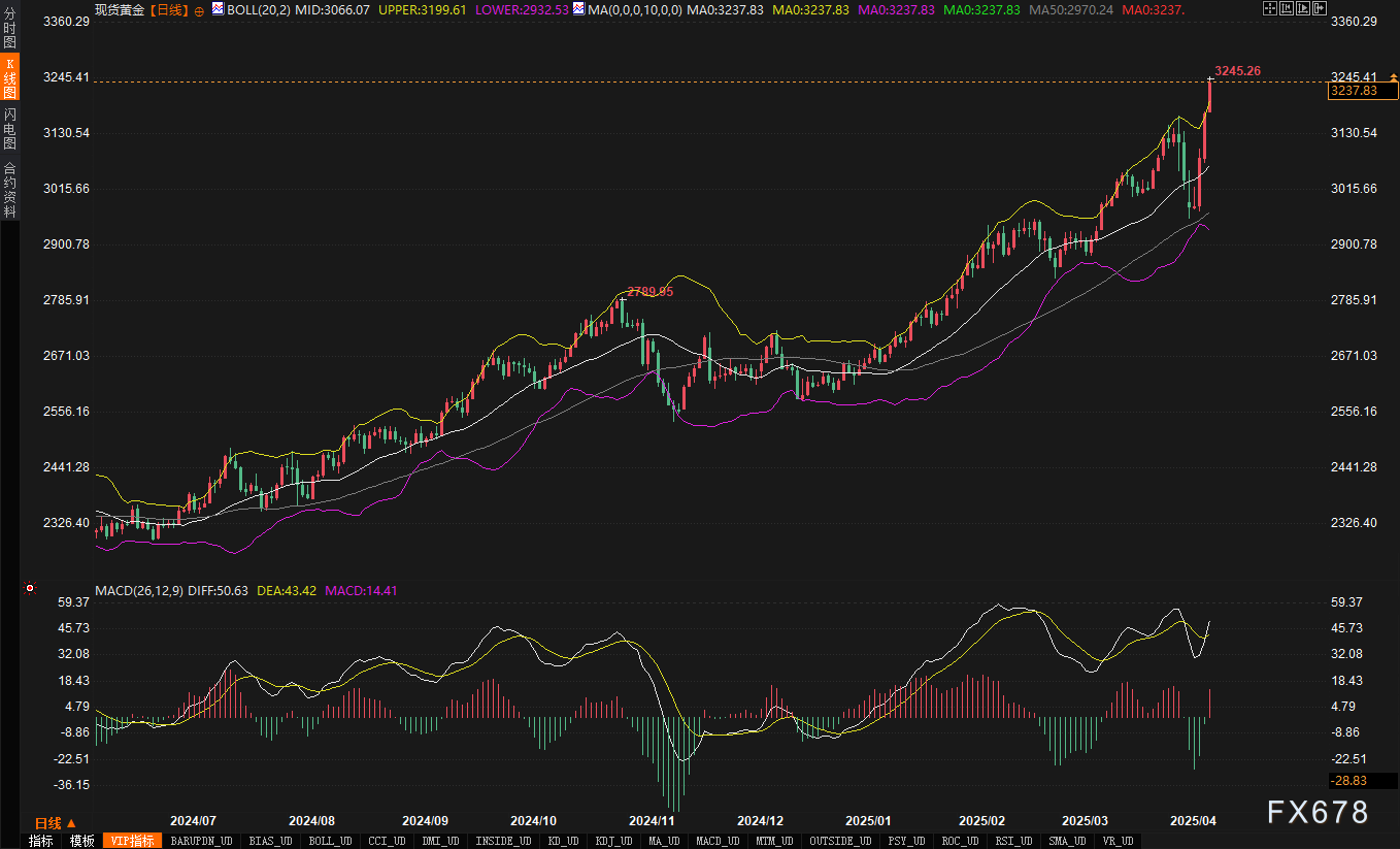 汇通财经APP讯——本周黄金市场表现亮眼,现货金从周一的约3050美元/盎司开启上涨之旅。周初,市场对全球贸易不确定性的担忧为金价提供了温和支撑,周二现货金升至3100美元/盎司关口。周三,美元指数跌破102.00,叠加特朗普关税言论加剧市场不安,金价加速上行,突破3150美元/盎司。周四,俄乌局势引发的避险情绪进一步推高金价,现货金触及3200美元/盎司心理关口。