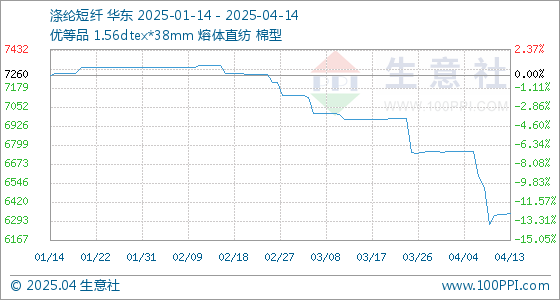 4月14日生意社涤纶短纤基准价为6340.83元/吨