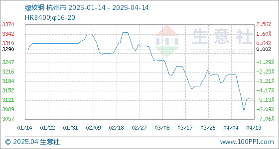 4月14日生意社螺纹钢基准价为3128.33元/吨