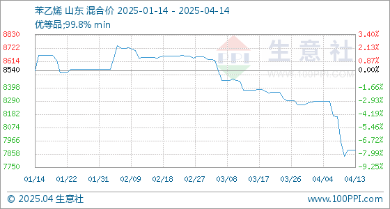 4月14日生意社苯乙烯基准价为7890.00元/吨