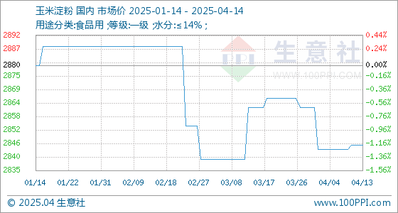 4月14日生意社玉米淀粉基准价为2846.00元/吨