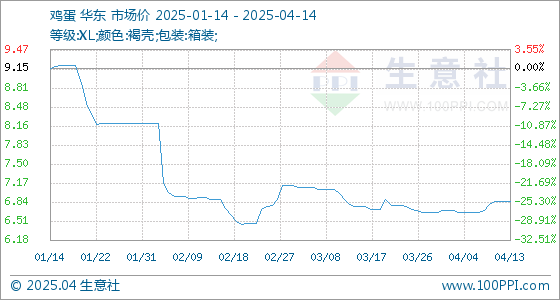 4月14日生意社鸡蛋基准价为6.85元/公斤