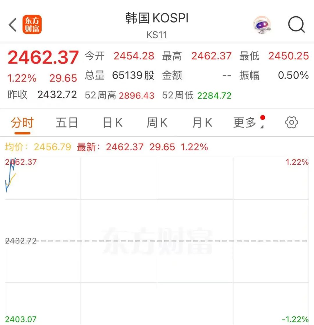 韩国KOSPI指数开盘涨0.9%,目前涨幅扩大至1.2%以上。