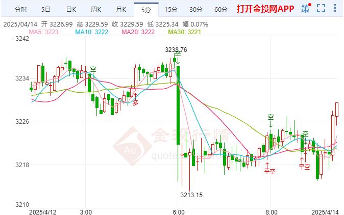 周一(4月14日)亚市早盘,现货黄金小幅低开后窄幅震荡,因美国豁免部分电子产品的关税,金价一度下跌近20美元至3209.85美元/盎司,但仍受到逢低买盘支撑,目前交投于3229.19美元/盎司。