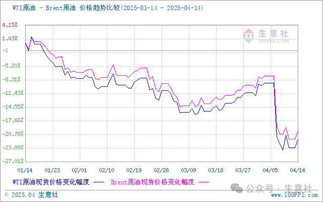 贸易摩擦升级,导致原油价格大幅走跌,但伴随着特朗普暂缓部分国家的关税,市场恐慌情绪缓解,原油超跌反弹。截止4月11日,美国WTI原油期货主力合约结算价报61.50美元/桶,布伦特原油期货主力合约结算价报64.76美元/桶,市场心态谨慎,短期内油价可能会波动比较剧烈。PX国内负荷降至74%附近,多套装置降负或检修中。国内PX供需基本面结构尚可,但美国关税政策升级,或将引发全球经济放缓担忧,成本端将受到一定影响。