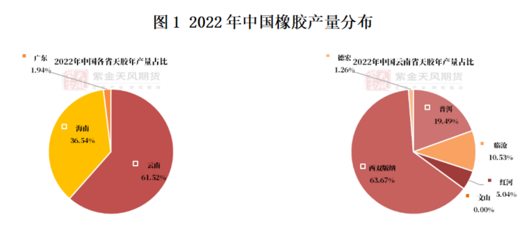种植与生产情况:中国近五年天然橡胶的产量在80万吨以上,初步估计,最大产能释放为120万吨左右。云南省近五年天然橡胶的产量在45万吨以上,占全国产量的62%。初步估计,云南省最大产能释放为75万吨左右。云南省橡胶种植地区包括西双版纳(64%)、普洱(20%)、临沧(11%)、红河(5%)。西双版纳橡胶产量占据主导地位,西双版纳包含景洪市、勐腊县、勐海县,橡胶种植区主要在景洪市和勐腊县,勐海县以种植茶叶为主。
