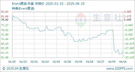 4月15日生意社Brent原油基准价为64.76美元/桶