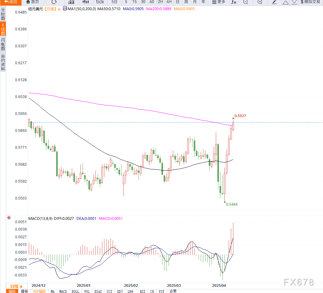纽元当前的强势走势建立在美元系统性走弱和市场避险情绪缓和的基础之上。尽管贸易摩擦的长期影响仍不容忽视,但技术面支撑和风险情绪回升使纽元具备持续反弹的条件。