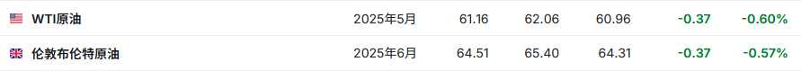 3. 截至发稿,WTI原油跌0.60%,报61.16美元/桶。布伦特原油跌0.57%,报64.51美元/桶。