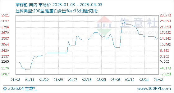 4月3日生意社菜籽粕基准价为2606.67元/吨