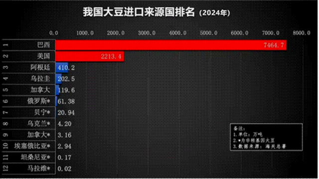 对于美国而言,中国仍然是其大豆种植户的头号目的地市场。美国统计调查局数据显示,2024年美国对华大豆出口价值达128.4亿美元,美国大豆出口总量的将近一半运往中国。若中国完全转向巴西,美国大豆出口可能下降10%~15%。