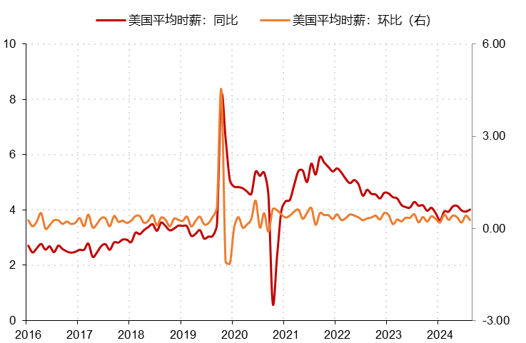 图5:美国非农就业及失业率 | 图6:美国薪资增速 |