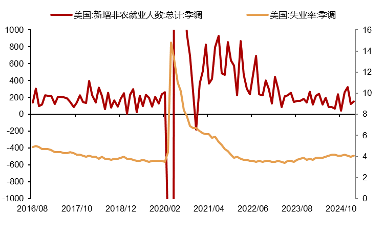 美联储是否降息仍存在不确定性,需要观察经济数据以及相关政策落地的效果,美联储或将进入观望模式。短期贸易政策或是影响联储降息路径的主要因素,其中,减税、关税、打击移民等一系列议程存在诸多不确定性,这些政策对美国通胀、劳动力市场以及经济增速的影响,可能需要少则两三个月、多则半年才能在经济数据中显露出来。