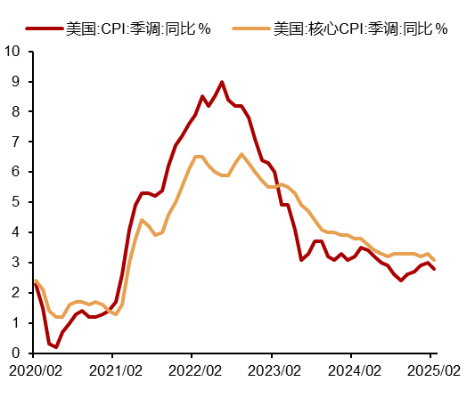 随着美国各项政策的推进,市场交易主线或将切换至宏观经济表现以及政策实际落地效果。数据显示美国经济面临一定压力,通胀预期抬升,叠加特朗普政策不确定性较高,经济出现调整的可能性较大。此外,在“类滞胀”风险加剧的背景下,美联储货币政策路径依然充满不确定性,或取决于经济数据表现。因此,除非经济状况极为疲弱,否则美联储很难在6月或之前做出降息决定。但如果关税对于通胀的影响可控,且经济继续放缓,那么美联储在三季度降息仍是有可能实现的。