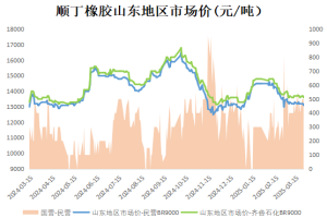 期货方面,2025年一季度合成橡胶期货价格呈现先反弹后回落的走势。BR橡胶主连从1月初13105元/吨快速反弹至月末的15215元/吨,之后震荡回落至13550元/吨附近,从合成橡胶主连走势来看呈现备库反弹后快速回落迹象。