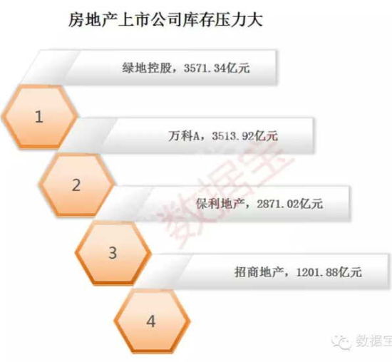 另外,房地产上市公司去库存压力仍然很大,证券时报股市大数据新媒体“数据宝”统计,144家A股上市房地产公司,今年三季度末累计存货近3万亿元。其中,绿地控股(17.44, 0.00, 0.00%)存货最多,达3571亿元。万科A(18.22, -0.02, -0.11%)次之,三季度末存货3514亿元。保利地产(11.29, -0.33, -2.84%)存货量排第三位,有2871亿元存货。另外,招商地产(36.68, 0.54, 1.49%)、华夏幸福(27.70, -0.17, -0.61%)、金地集团(13.38, -0.40, -2.90%)、首开股份(13.20, -0.09, -0.68%)、金科股份(5.65, 0.03, 0.53%)、中南建设(17.37, 0.57, 3.39%)、金融街(12.06, 0.71, 6.26%)等14家上市房企三季度末存货量都超过500亿元。